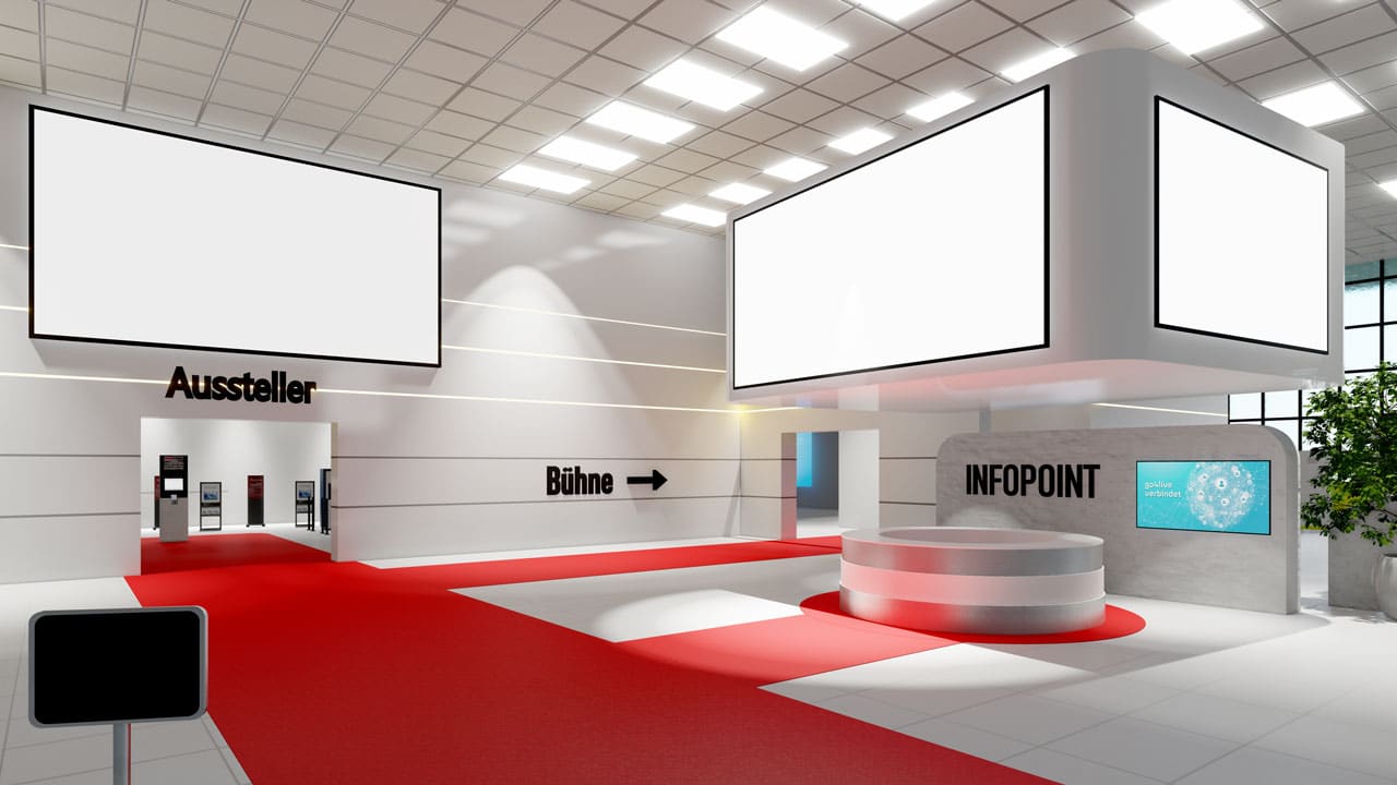 Laden Sie Ihre Besucher zu Ihrem individuell gestalteten Ausstellungsstand ein. Interagieren Sie mit Ihren Kunden via Face to Face Meeting oder eingebauter Chat Funktion. Stellen Sie Produktfotos aber auch Produkt- oder Imagevideos für Ihre Kunden bereit. Selbstverstänlich bekommt jeder Besucher eine Goodie Bag, entweder direkt am Stand als Download oder per E-Mail zugeschickt.